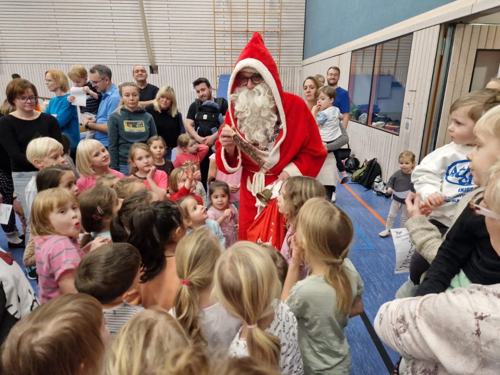 Der Nikolaus stand plötzlich in der Tür. Anschließend und voller Spannung konnten die Kids mit ihren Laufzetteln loslegen, alle 10 Stationen durch zu „turnen“. Die Übungsleiter hatten sich wieder spannende Stationen überlegt, an dem manches Kind – und auch die Eltern – ins Schwitzen kamen.